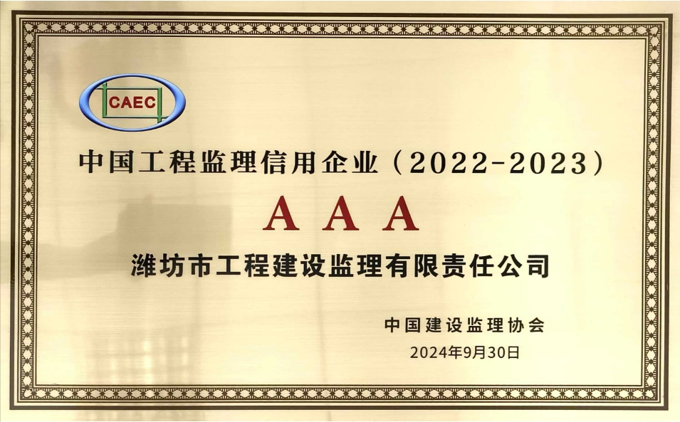 • 中國工程監(jiān)理信用企業(yè)AAA級