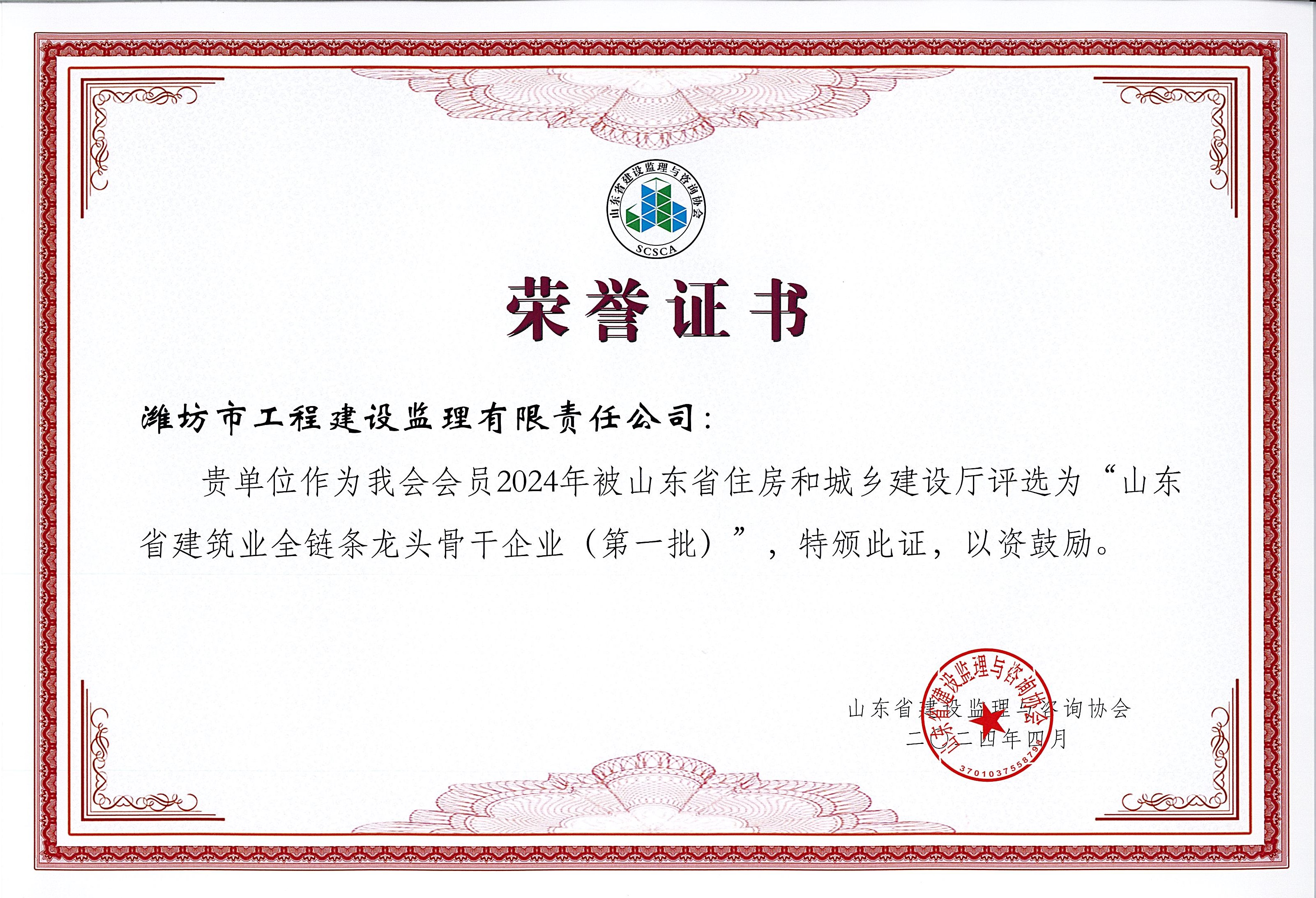 • 山東省建筑業(yè)全鏈條龍頭骨干企業(yè)(第一批)