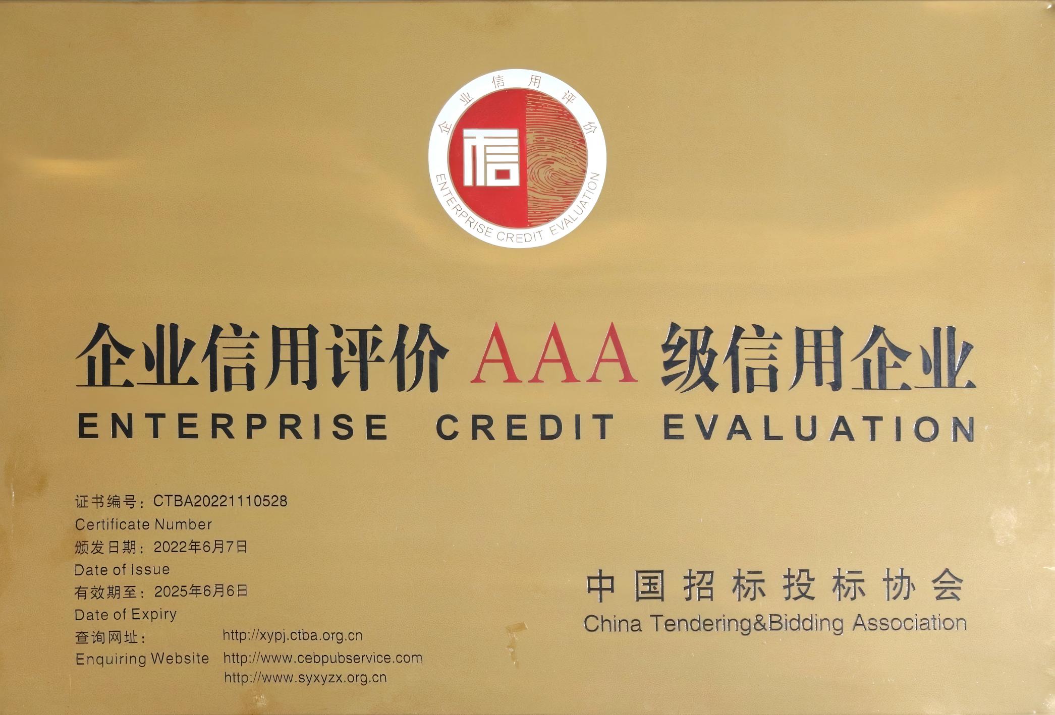 • 中國招標(biāo)投標(biāo)協(xié)會企業(yè)信用評價AAA級信用企業(yè)